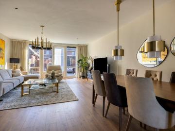 A well-maintained family home with an energy label A, four bedrooms, and a front and spacious back garden, ideally located in The Hague. The property is situated in a child-friendly neighborhood, just a stone’s throw away from the Leidschenveen shopping area, where you’ll find everything for your daily needs. The British School (SSL) is only a few minutes’ walk from the house. The train station Ypenburg is easily accessible, and major highways such as the A4 and A12 can be reached within minutes. Layout: A front garden leads you to the entrance of the home. Upon entering, the hallway features a separate toilet with a washbasin. From the hallway, you step into a modern kitchen, which is fully equipped and includes a convenient bar. The kitchen offers various built-in appliances, such as a gas hob with extractor hood, dishwasher, oven, microwave, and an American refrigerator. The kitchen flows into the bright living area, which provides access to the sunny garden. The garden also feature